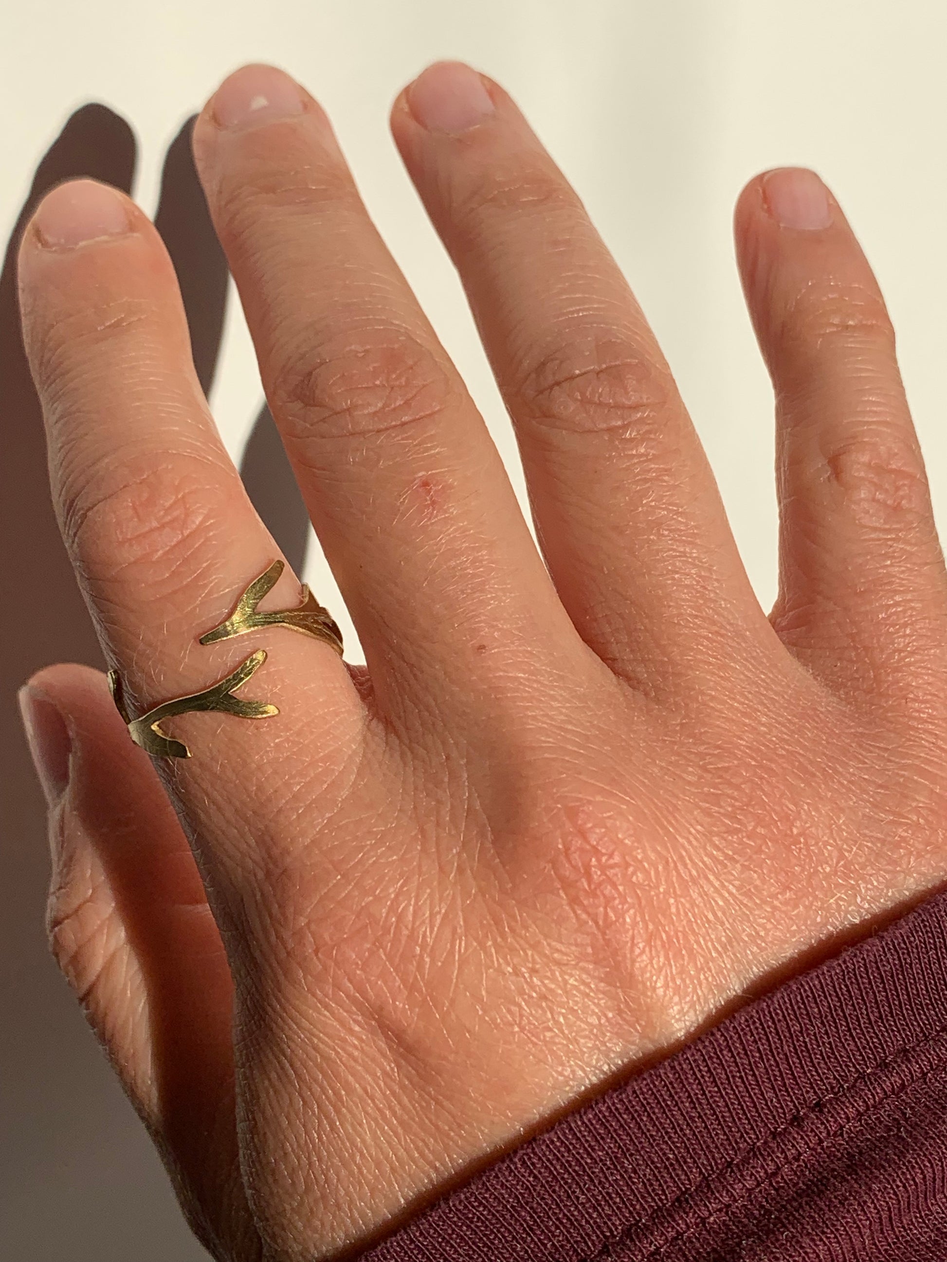 Ispirato alla grazia sottile dei rami di salice, questo anello traforato a mano in ottone evoca la saggezza elfica e la connessione profonda con la natura.