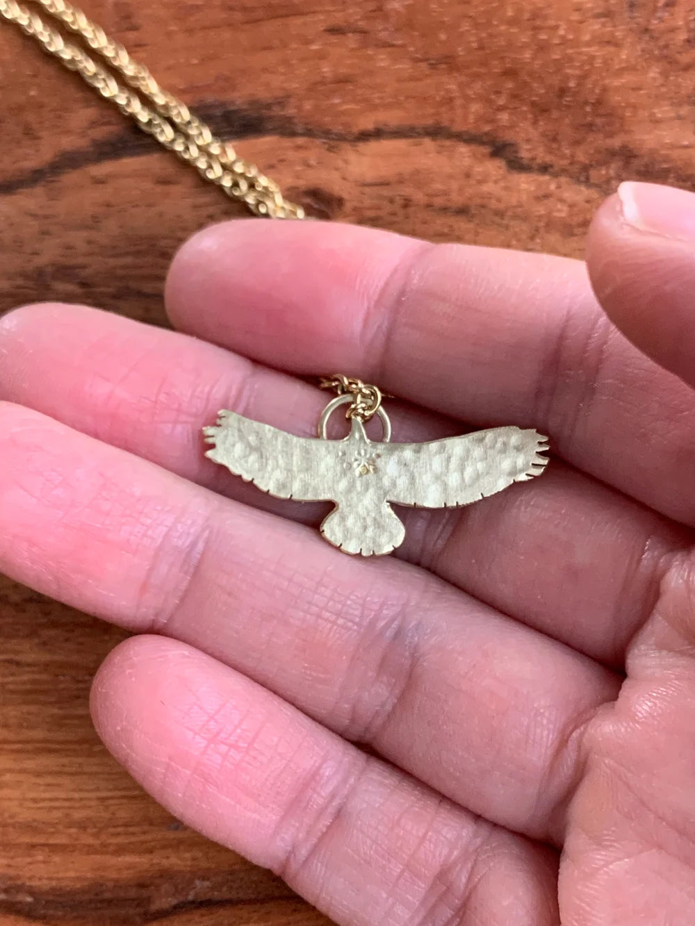 Il ciondolo arriverà munito di catenina in acciaio dorato e chiusura fatta a mano: lunghezza circa 45 cm.