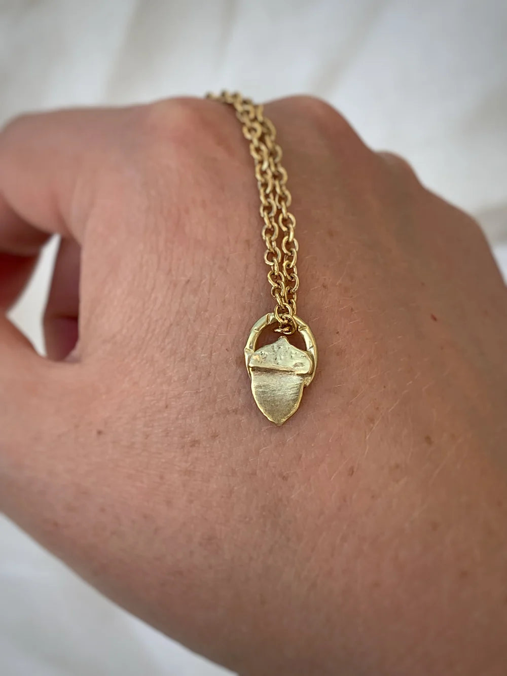 Ogni ciondolo arriverà munito di catenina in acciaio dorato (45 cm circa di lunghezza) e chiusura fatta mano. Se desideri una catenina più lunga o più corta, scrivimelo nelle note dell'ordine!