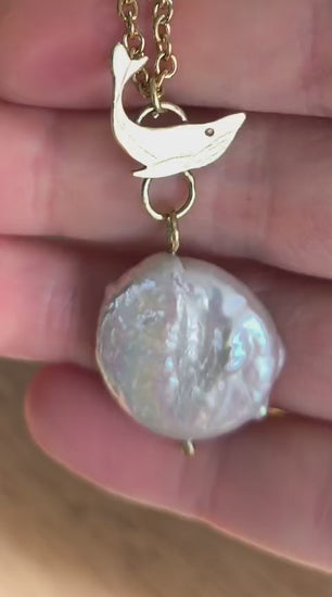 Collana "Balena & luna piena"— Amuleto in ottone e perla di fiume