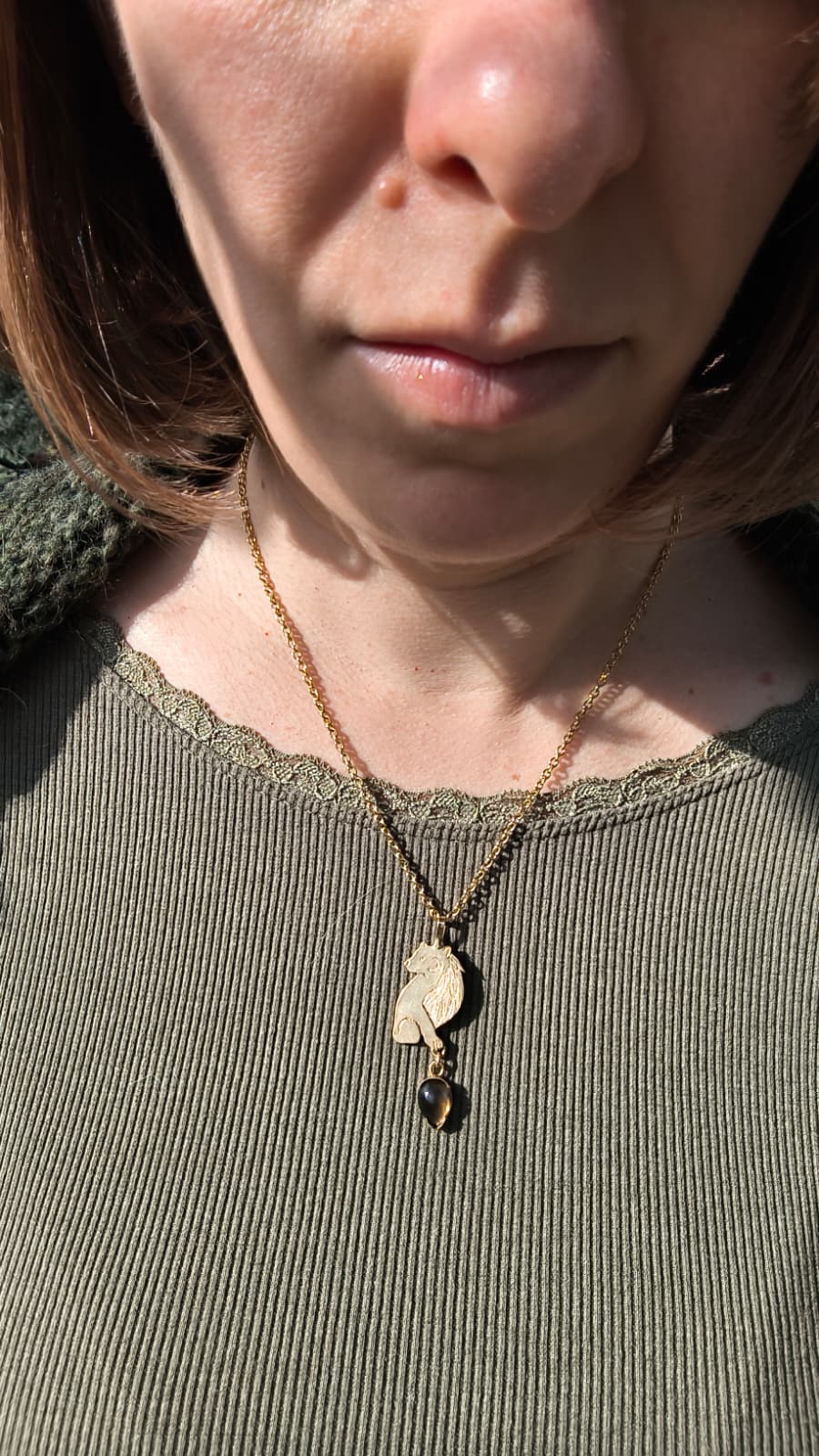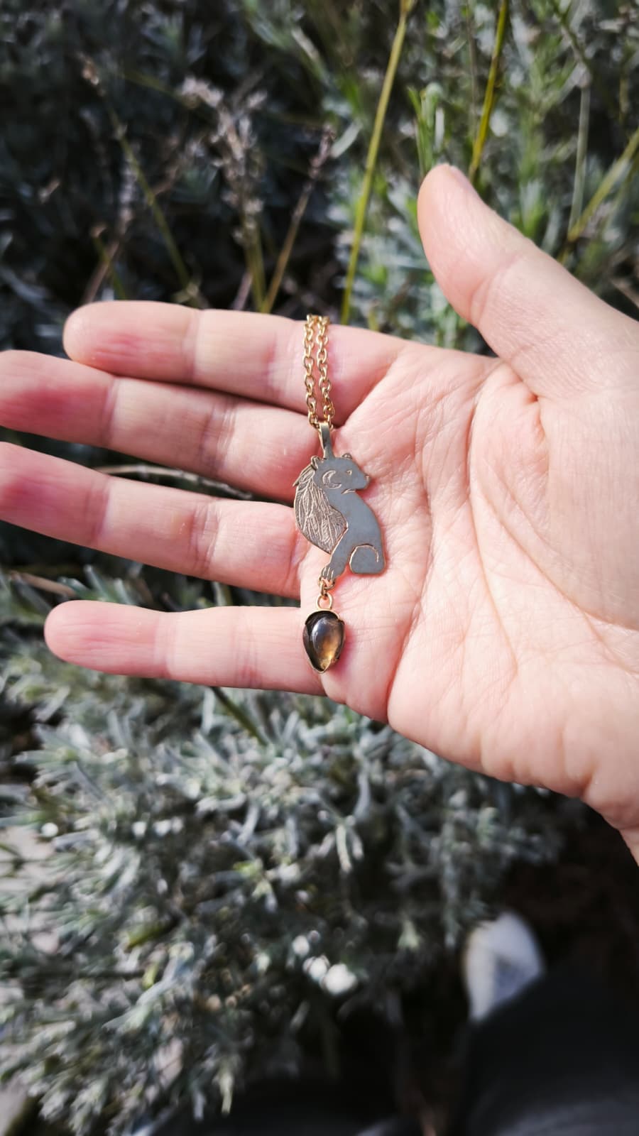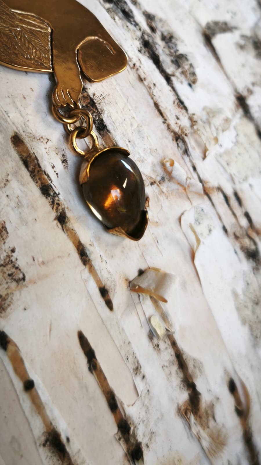 “Orso del sonno sacro” – Amuleto in ottone placcato oro 18kt e quarzo fumè